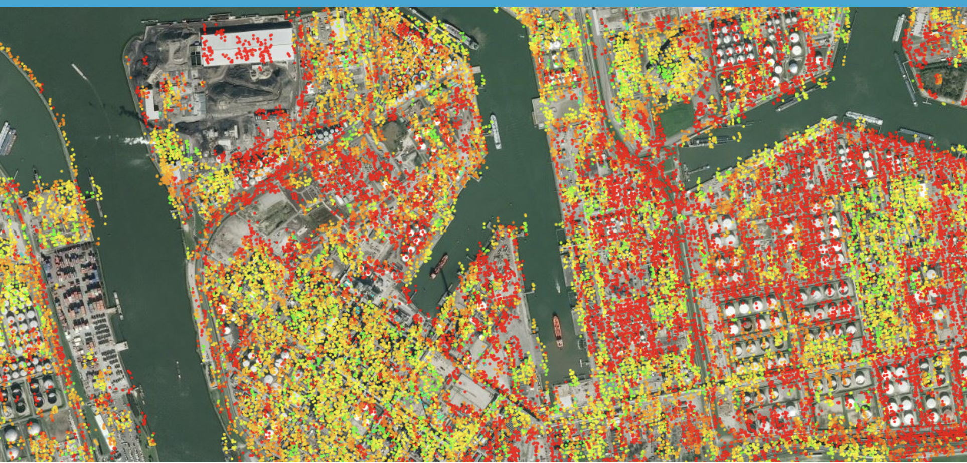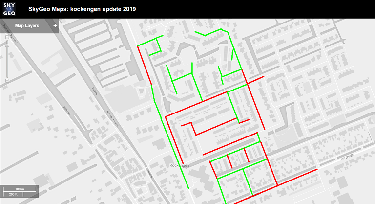 De standaarddeviatie in (x,y,z) lokalisatie van de meetpunten in de SkyGeo kaart daarentegen is veel kleiner: +/- 1 meter. Dit heeft als gevolg dat we meetpunten van individuele panden veel beter kunnen scheiden van de straat en de omringende huizen. Variaties in verzakking zijn voor ervaringsdeskundigen goed te duiden en te vertalen naar een berekening van de termijn waarop inspectie moet plaatsvinden.