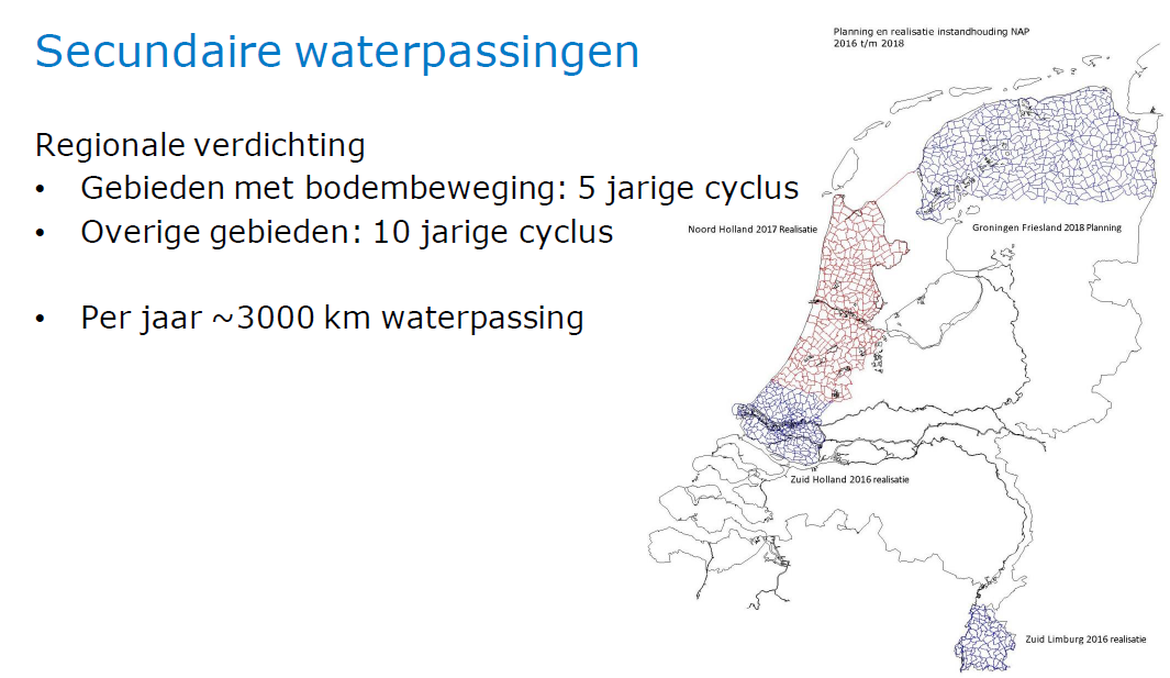 Secundaire waterpassingen voor het NAP netwerk gepland voor de periode 2016-2018 (Bron: B. Albers, RWS)