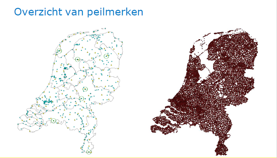 Deze beperking voor de toepassing van bodembeweging blijkt verder nog door het huidige beheer van het netwerk van NAP peilmerken. Daarover hieronder meer. Eerst bekijken we hoe het Nederlandse netwerk van peilmerken er uit ziet.